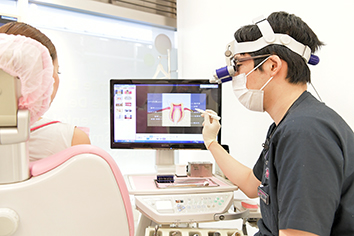 問題が起きている箇所を口腔内専用のカメラで撮影し、ご自身の症状をご理解いただいたうえで、治療を進めていきます。