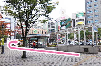 改札を出て、左側エスカレーターを降りて、北口ロータリーに出てください。