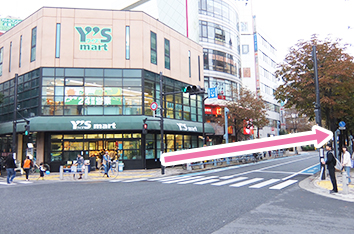 マクドナルド、ドトールコーヒーの前を通り過ぎる形で進んでください。