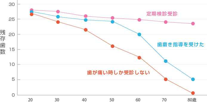 そして、どれだけ多くの歯が残っているかということが、全身の健康状態と確固たる相関関係にあるという統計データも出ています。