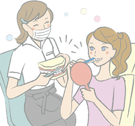 毎日ハミガキしていても、ミガキ残しなく、ピカピカにするのは、結構難しいんです。当クリニックでは、ハミガキのしかたのアドバイスをしています。一緒に正しいブラッシング法をマスターしましょう!